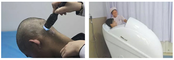 先利用中药药浴,打开白斑处皮肤毛孔,增加药物吸收,激活体内失活的黑色素细胞;再利用308激光,直接作用于白斑患处,增进黑色素细胞生长,从而达到祛白的目的。