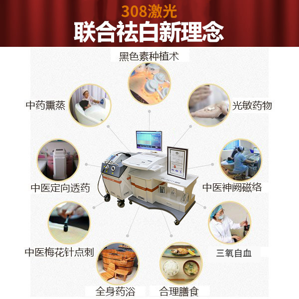 zui新版的《白癜风诊疗共识》中指出:白癜风治疗尽可能采取个性化综合疗法!我院以“美国308nm准分子激光治疗”为核心,整合了中西药、物理治疗、黑色素种植疗法等以及生活调养为一体,形成多角度、多技术的治疗体系,疗效远大于单一治疗。
